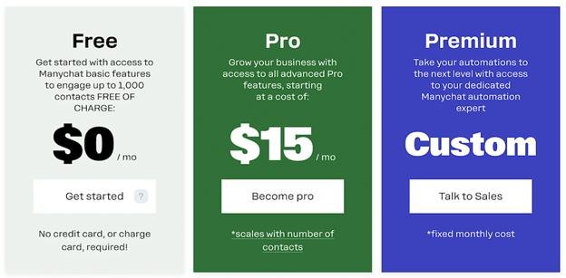 ManyChat offers a Free plan and Pro / Paid plan(s).