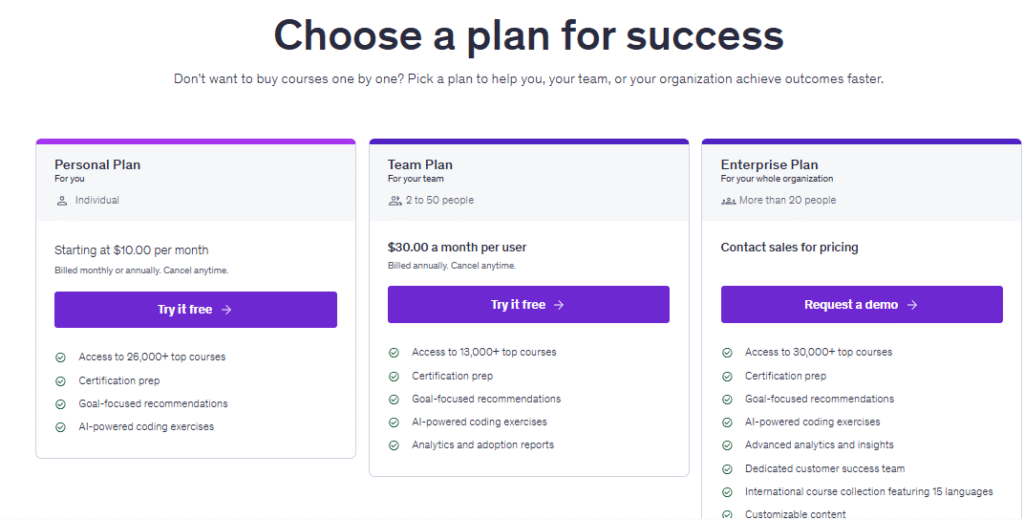 • Udemy Business (Team Plan): Starts at around $30 per mouth for small teams.