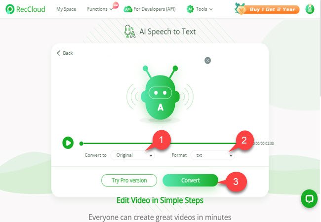 Being positioned as a “next-gen” platform, RecCloud includes or integrates AI tools: speech-to-text (transcription), subtitle generation, translation, summarization of videos/audio, text-to-speech.